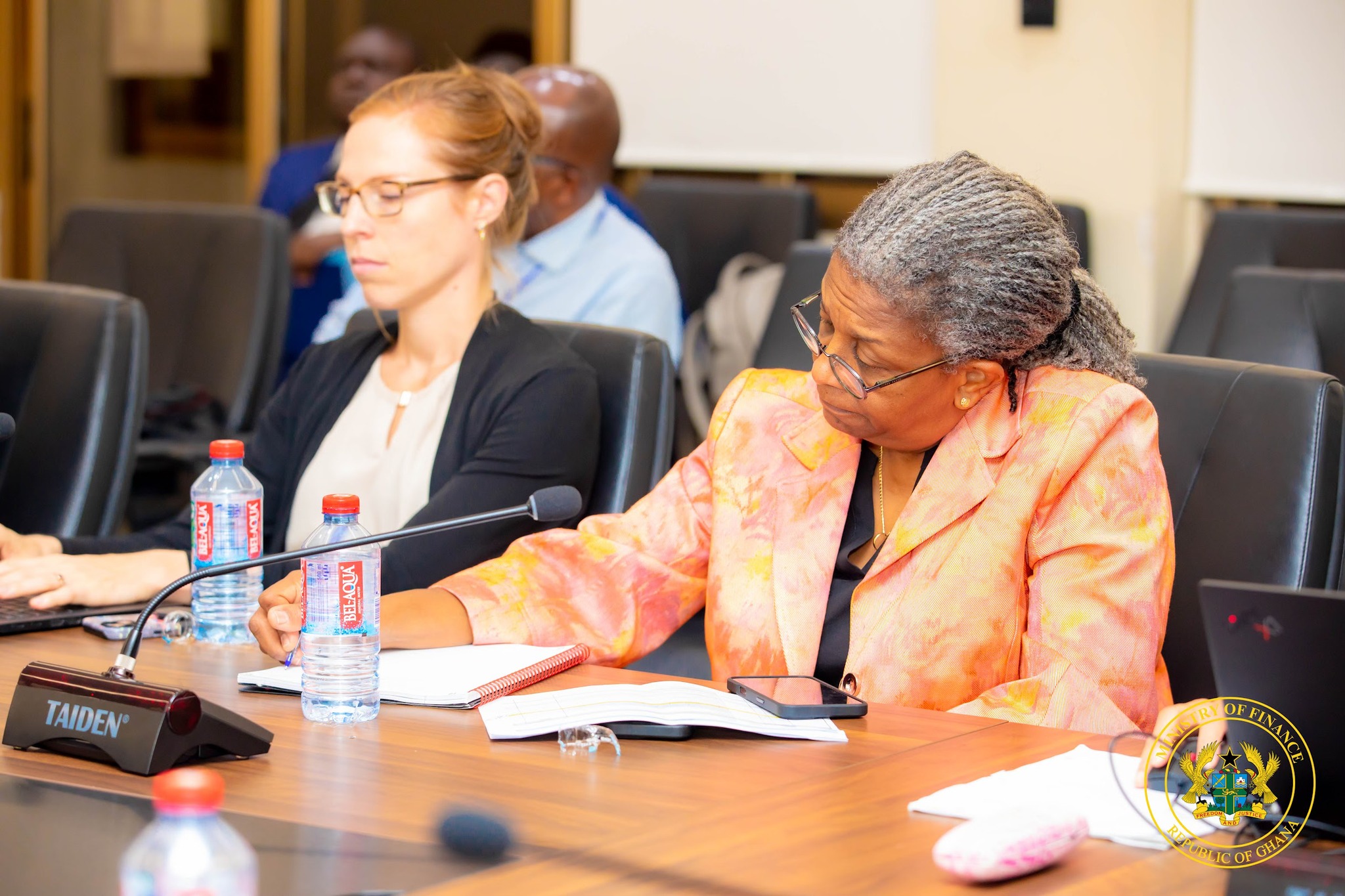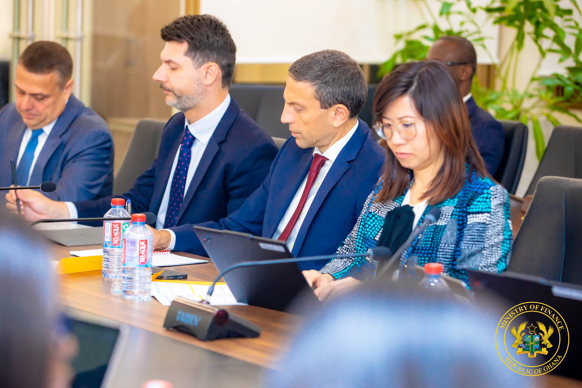 Present at the meeting were: Bank of Ghana Governor Dr. Johnson Asiama, First Deputy Governor Dr. Zakari Mumuni, Deputy Finance Minister Thomas Nyarko Ampem, Chief Director of the Finance Ministry Patrick Nomo, and other senior officials from both the Ministry and the central bank.