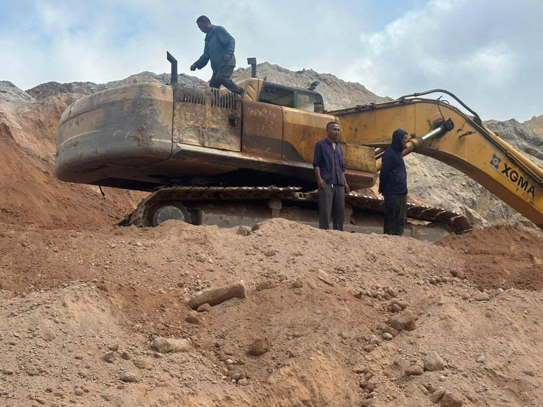 A Nissan Navara vehicle was seized at the scene, together with a pump action shotgun with four (4) cartridges, and mobile phones belonging to the arrested suspects. The team also discovered two (2) excavators alongside large heaps of sand and paydirt, evidence of extensive environmental degradation along the riverbank.