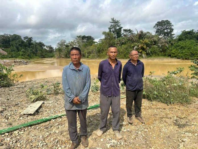 The National Anti-Illegal Mining Operations Secretariat (NAIMOS) has arrested three Chinese National engaged in illegal mining activities at Hiawa Koofrom in the Amenfi Central District of the Western Region. The arrests follows an intensified nationwide crackdown on illegal mining by NAIMOS. The intelligence-led operation resulted in the arrest of three (3) Chinese galamseyers, the seizure of a pump action gun with four cartridges, and the impoundment of two (2) excavators used for destructive mining along the Ankobrah River.