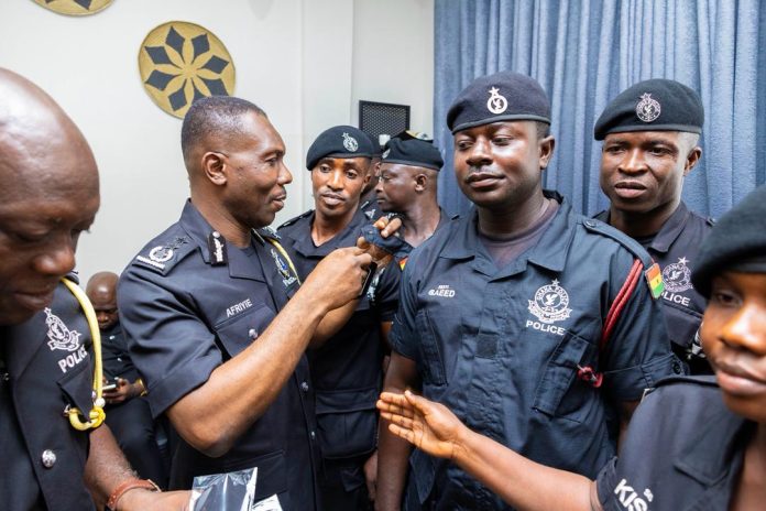 The Inspector-General of Police (IGP), Christian Tetteh Yohuno, has today, 5th January, 2026 promoted Thirty (30) officers to their next ranks in recognition of their distinguished conduct during operations that led to the retrieval of 2,600 AK 47 ammunition at the Kantanso Asankare Police Barrier in the Ashanti Region and the dismantling of a robbery syndicate at Antoakrom- Manso Nkwanta stretch during the Christmas season.