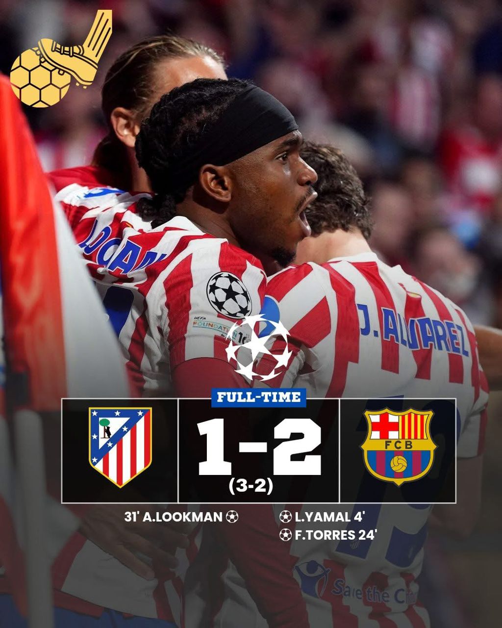 FC Barcelona bowed out of the UEFA Champions League in dramatic fashion after a 2-1 away victory against Atletico Madrid at the Riyadh Air Metropolitano proved insufficient to overturn a first-leg deficit.