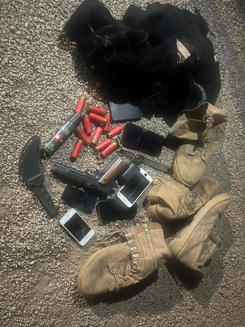 During the operation, police retrieved a pistol loaded with two rounds of .32 ammunition, eleven BB cartridges, a locally manufactured weapon (“blantine”), pepper spray, desert boots, assorted mobile phones, and a black pullover.